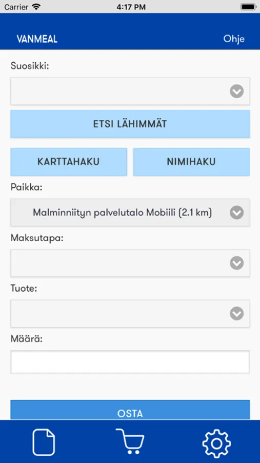 VanMeal sovellus käyttää sovelluksen käytön aikana paikkatietoa lähimpien palveluiden hakemiseen.