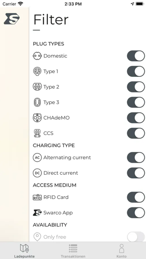 • Filtern Sie die Ladestationen nach den für Sie relevanten Steckertypen