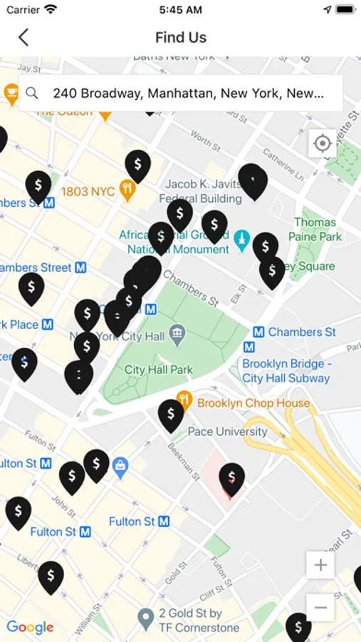 Restrict transactions to merchants near your location (using your phone’s GPS) or by region using city, state, country or zip code on an interactive map.
