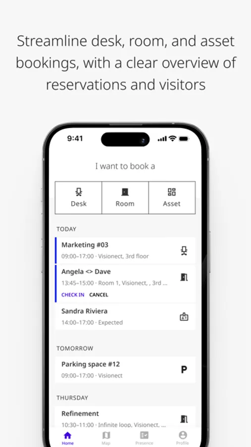 - Find and book meeting spaces, check-in to meetings, edit bookings