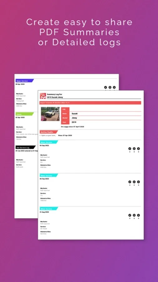- Export a PDF summary of your vehicle’s maintenance history