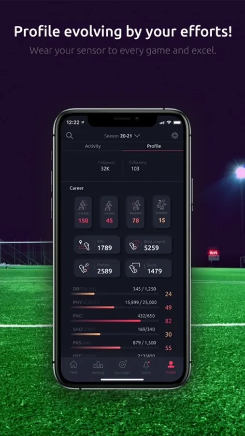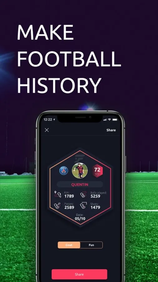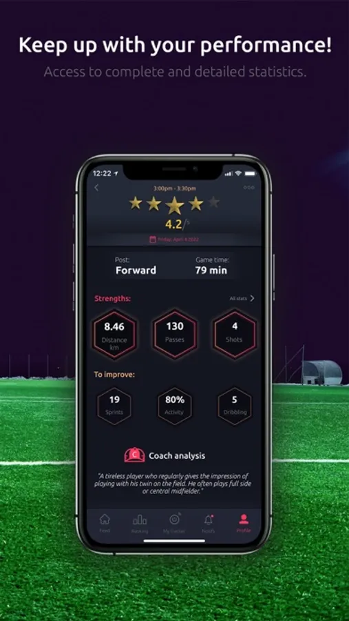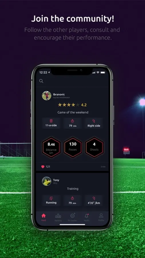 Our sensor, the Meteor, will allow you to have your statistics like your kilometers covered, your speed etc. In addition to these physical stats, you will be able to see your number of passes, your number of shots, your shooting power and many other technical stats!