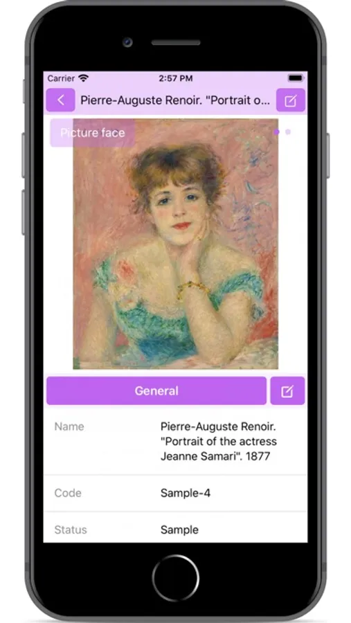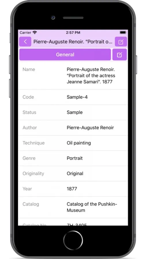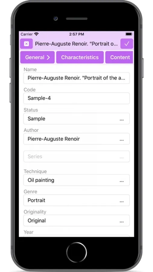 You can study your paintings in more detail by adding their images, descriptions and characteristics to the mobile application.