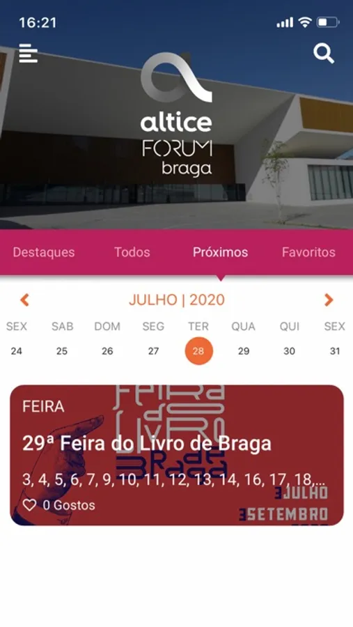 Agenda - Navegue na lista de eventos, saiba as novidades em primeira mão, receba notificações sobre os seus eventos favoritos e fique a par de tudo o que vai acontecer no Altice Forum Braga.