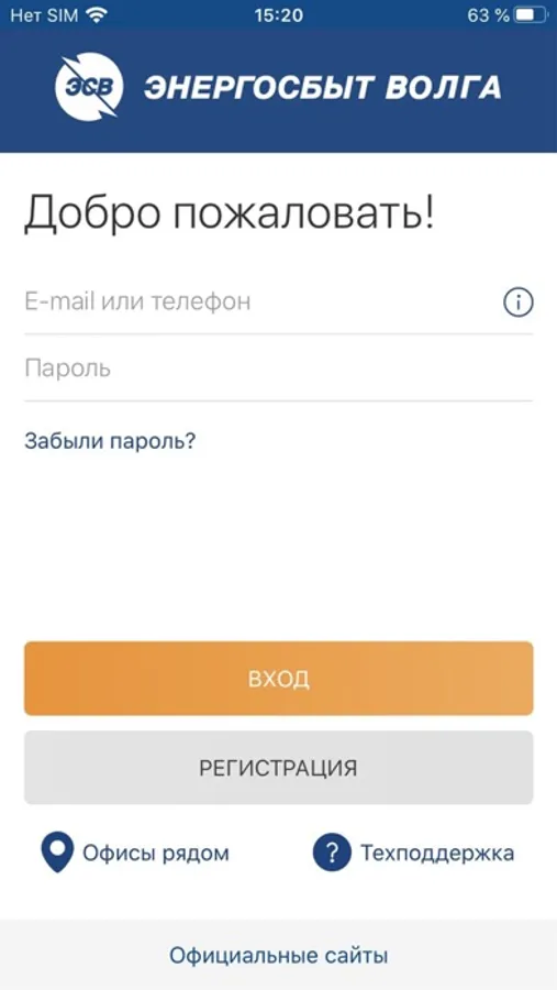 Если Вы зарегистрированы в Личном кабинете клиента на сайте https://my.esbvolga.ru/auth/, для входа в приложение Вам достаточно использовать указанный Вами при регистрации телефон или e-mail.
