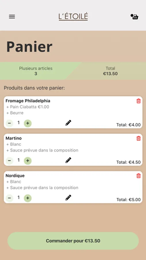 Où que vous soyez, avec l'application de L'Étoilé Sud, vous pouvez commander sans souci parmi la vaste gamme.
