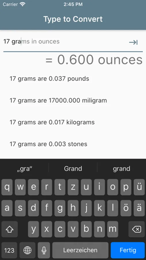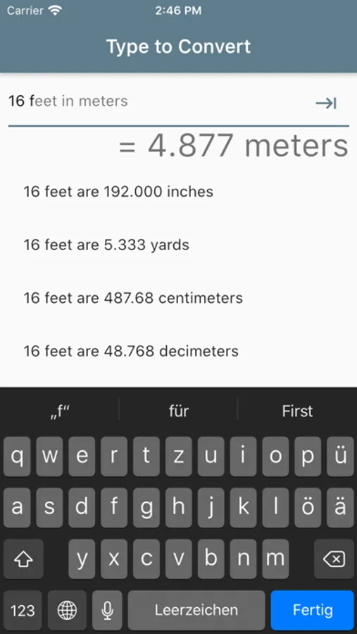 Type to Convert is an units conversion app that allows you to convert miles to kilometers, grams to pounds etc. This is done by typing (e.g. '12 meters in feet'). The app will automatically suggest results as you type.