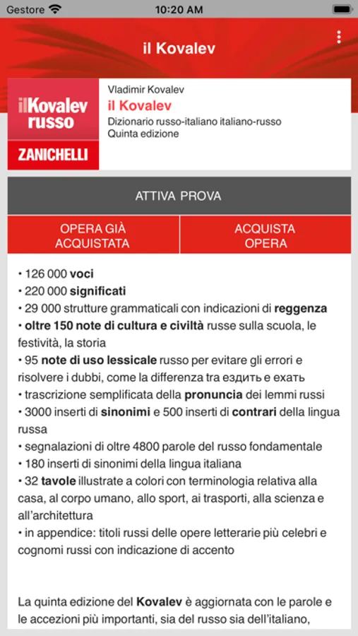 Attiva una prova gratuita, che ti permette di effettuare 30 ricerche all’interno dell’intero dizionario, oppure acquista subito in modalità in-app.