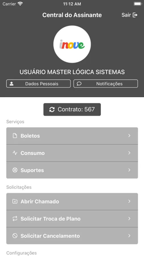 A inove Central do Assinante disponibiliza os seguintes recursos: