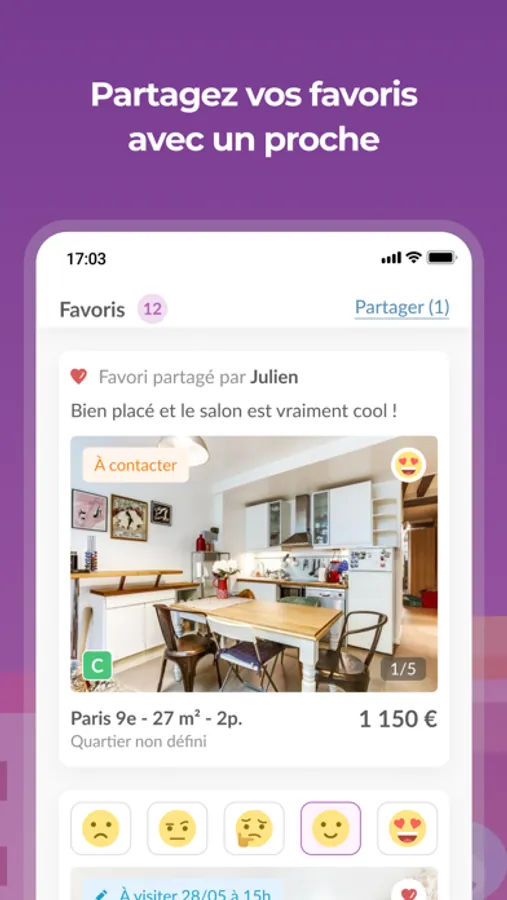 Partagez vos coups de coeur à votre conjoint ou à vos colocataires directement depuis l'application pour gagner en efficacité.