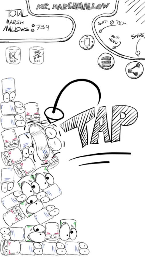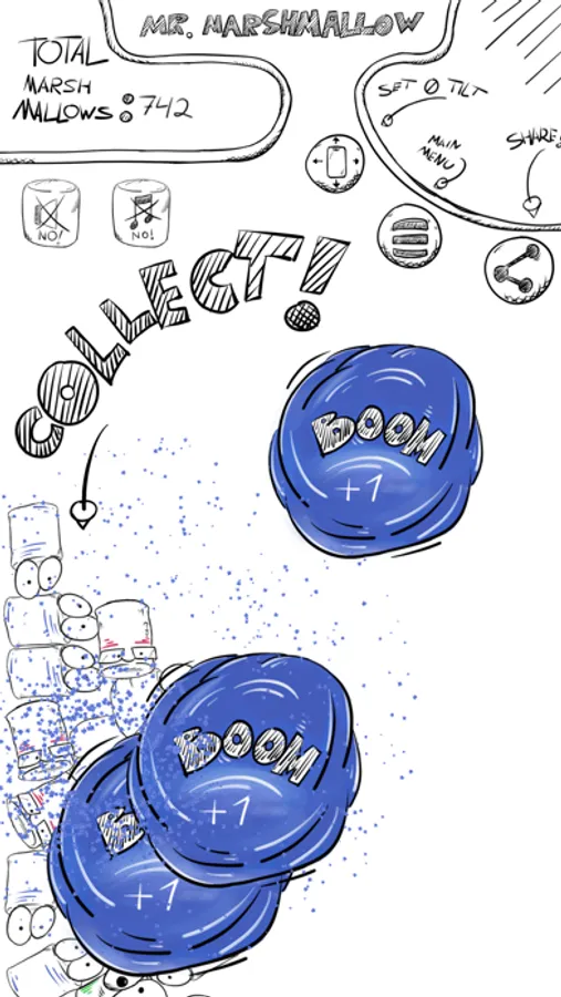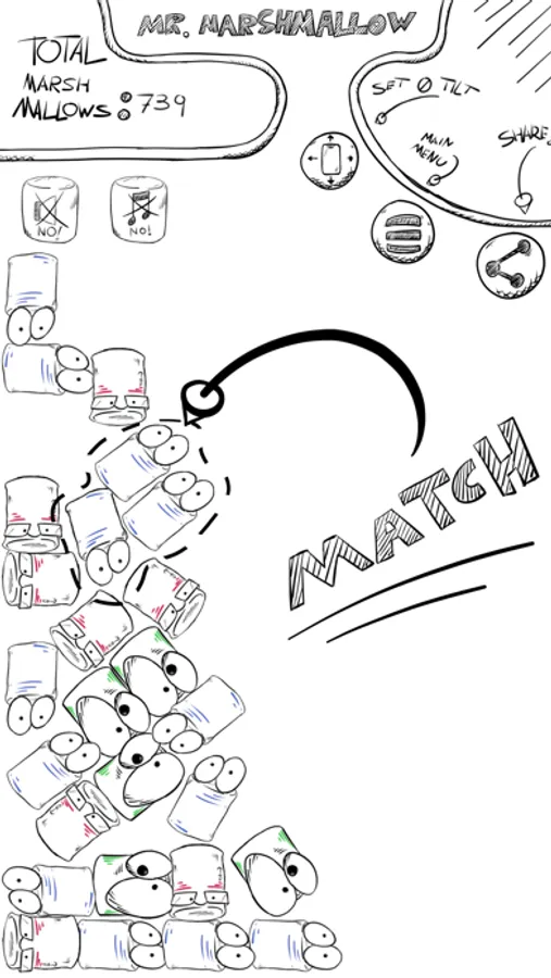 Tilt your device until 2 or more of the same marshmallow types are touching each other, then tap on one them to collect the entire chain of touching marshmallows!