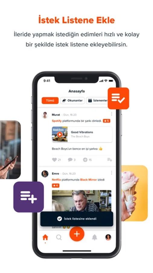 İleride deneyimlemek istediğin edimleri hızlı ve kolay bir şekilde istek listene ekle.