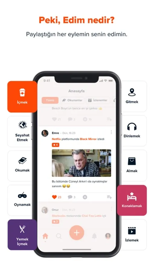 Yediğin yemeği, okuduğun kitabı, izlediğin filmi, gittiğin etkinliği, dinlediğin şarkıyı, oynadığın oyunu, aldığın ürünü edimle.