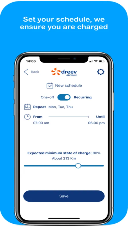 Thanks to our app, configure your mobility needs, track the state of charge of your vehicles in real time when they are connected to the V2G charging station and take control of your charge at any moment.
