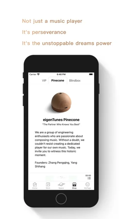 Moreover, as we were founded by a group of science & engineering enthusiasts, we have a strong inclination toward software and hardware development. This led us to create our exclusive playback platform, which you see as the app, as well as our unique playback device called the "eigenTunes Pinecone." You can explore the latest developments in the "Shop" section within the app.