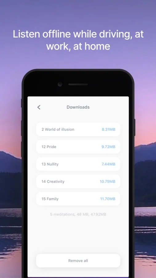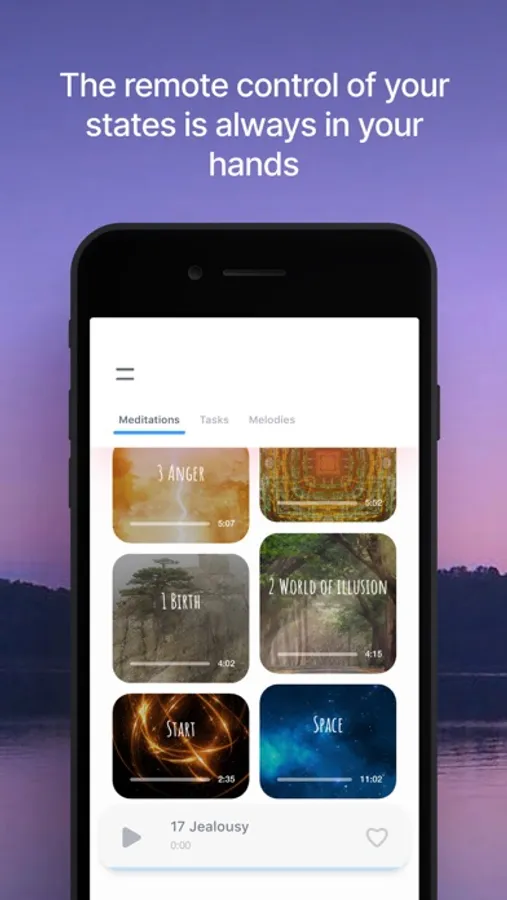 Flow: Mindfulness, Meditation & Happiness contains 55 online meditations available to you. They are divided into 7 levels of awareness, based on ancient Indian practices, meditation, yoga, self-knowledge, and psychology. You can consistently listen to these meditations, ascending them step by step, like the steps of an ancient Indian temple hidden in the jungle. From chaos and stress, you will come to silence and inner peace, peace. To a clear, dazzling blue sky of clarity, awareness of yourself and your own qualities. From the top on which you find yourself, a beautiful view of the mountains and oceans of your feelings and emotions opens. You can become the master of everything you see on this journey, freely switch between emotional states, changing them, like clothes. This is not magic - this is the practice of controlling your inner world. And this skill is available to you through the Flow online meditations.