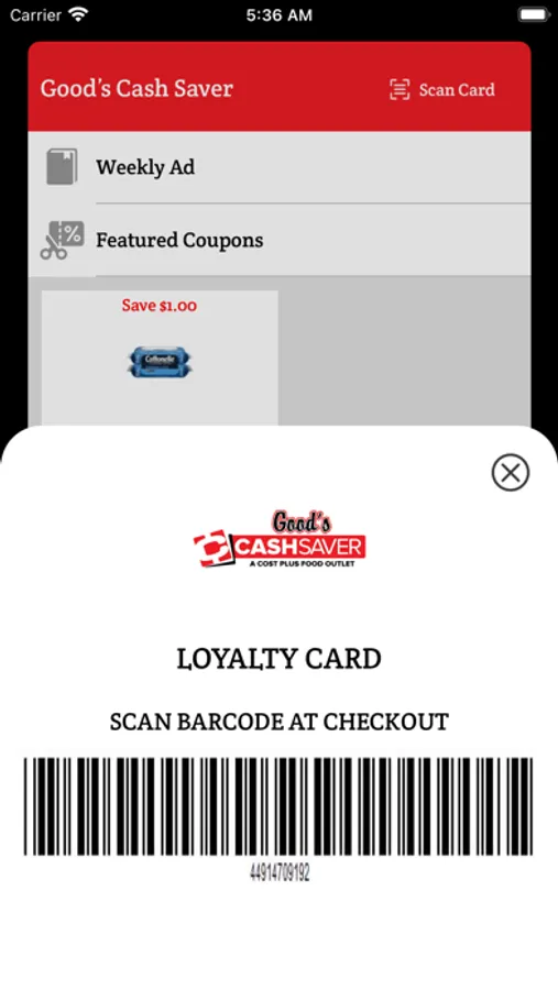 Claim as many coupons as you want with one simple scan! No more searching through mailers or printing out emails, Good's Cash Saver is bringing rewards right to your mobile device!