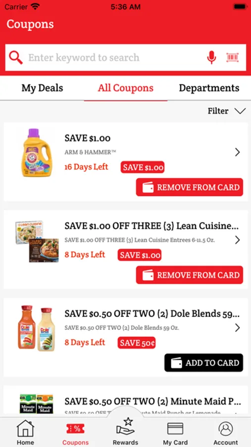 2. Adding coupons and specials to your list, and