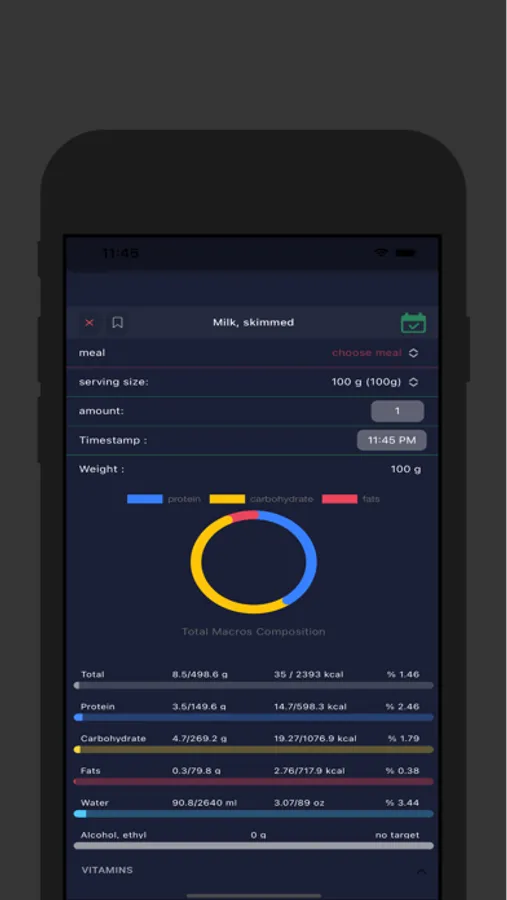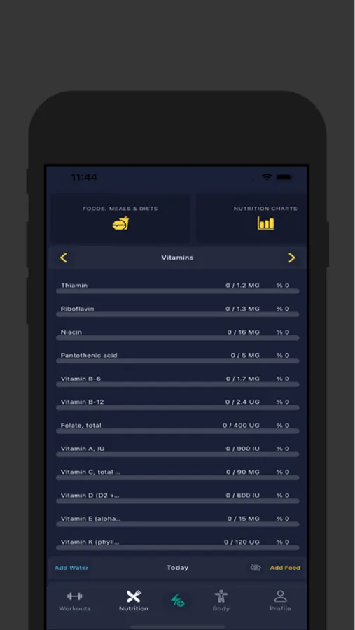 Track water consumption, food intake, workouts, steps, and body measurements, all in one place.