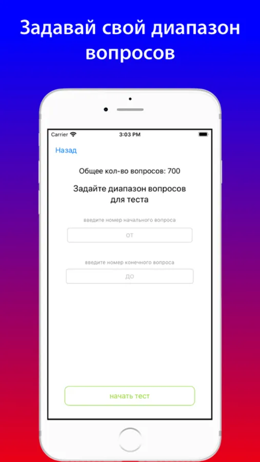 • Марафон - Предлагается ответить на все вопросы с возможностью выбора вопросов или же все вопросы, без ограничения по времени и ошибкам;