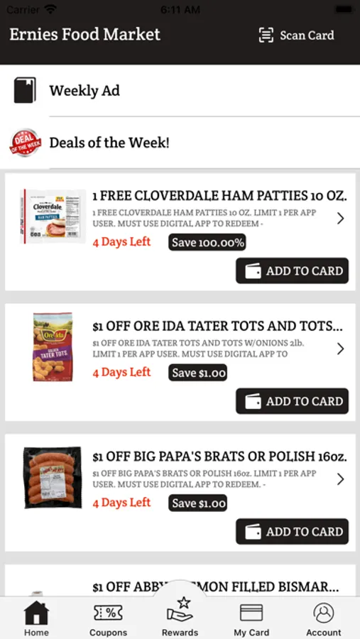 Claim as many coupons as you want with one simple scan! No more searching through mailers or printing out emails, Ernie's Food Market is bringing rewards right to your mobile device!