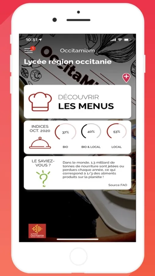 Vous étudiez dans un lycée en Occitanie : retrouvez sur votre smartphone le menu proposé par votre self. Chaque jour, de l’entrée au dessert, consultez la liste des allergènes présents et les labels des produits utilisés par votre cantine (bio, local …).