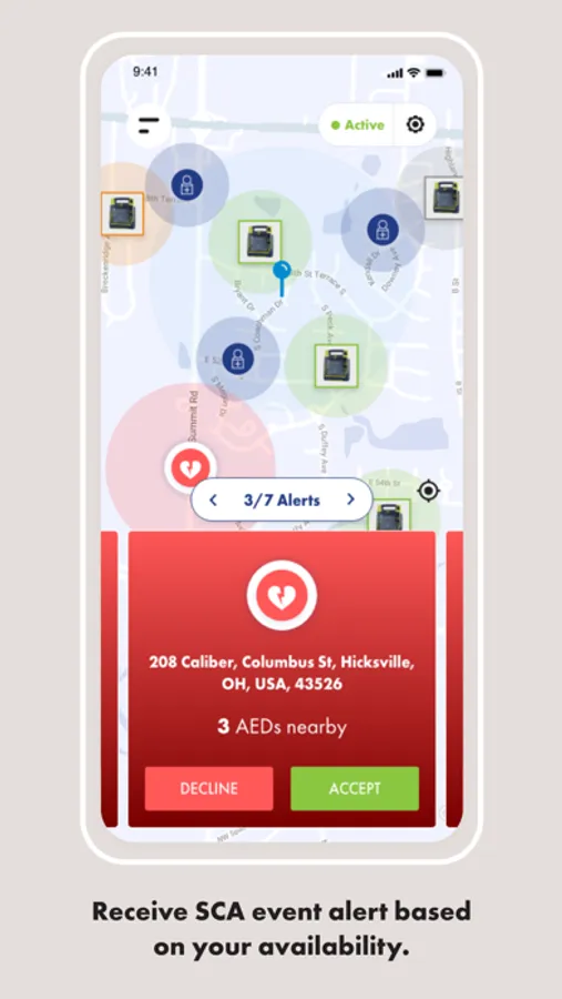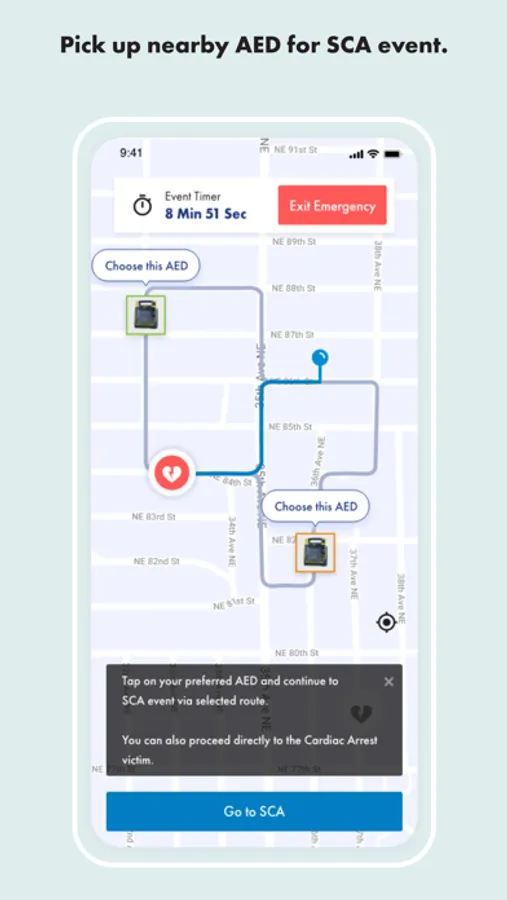 RescuerLink fills the critical information gap by alerting volunteer CPR trained responders of nearby Cardiac Arrest and the location of the closest registered AED.