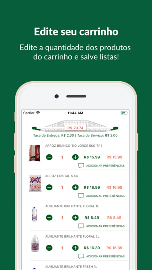 • Adicionar produtos no seu carrinho com um simples tocar e arrastar.