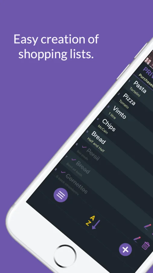 - Mark off shopping items as purchased as you buy them.