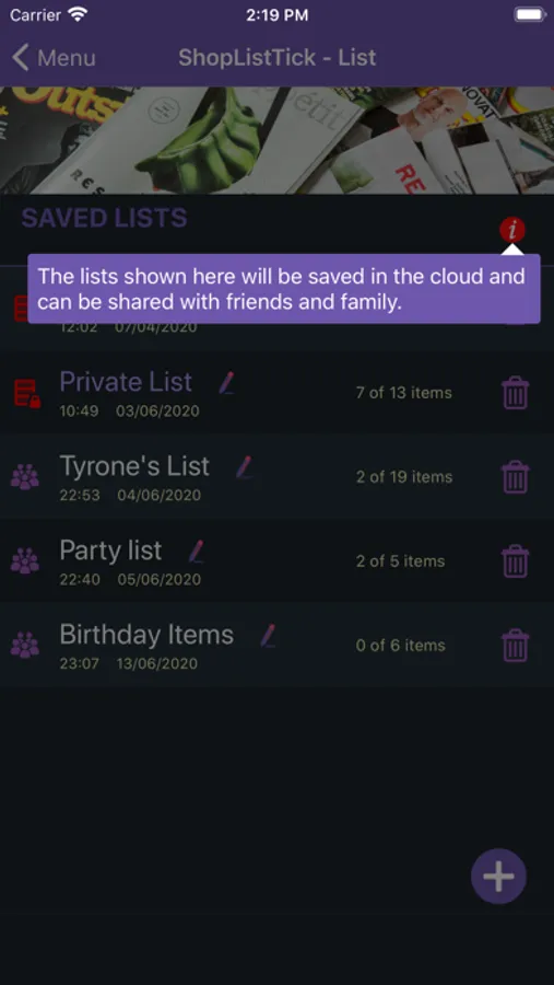 - Backup of shared lists in the cloud.