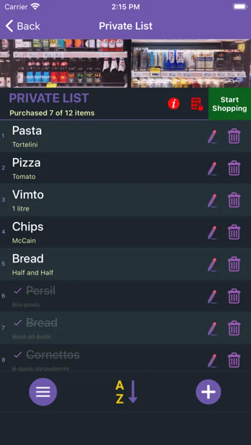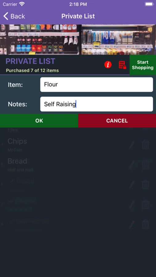 - Add notes to your shopping items.