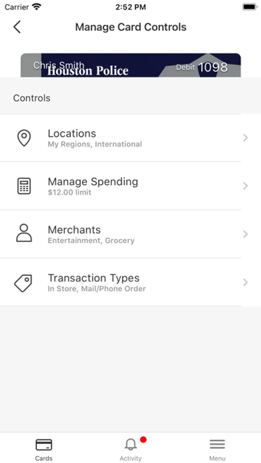 • Set spending limits for yourself and other card users