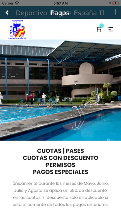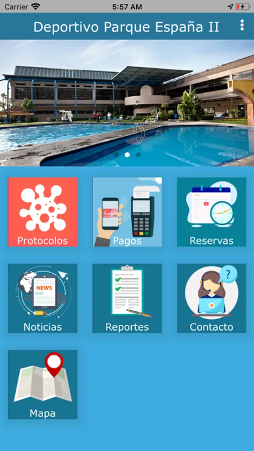 Application for users of the Spain Park in Puebla. Access control, payment of fees, account statement, reservation of facilities, reports, gym, photos and video