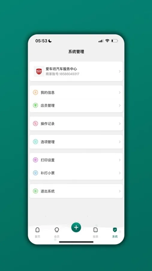 商家信息,店员管理,权限管理,操作记录,打印小票,数据导出...