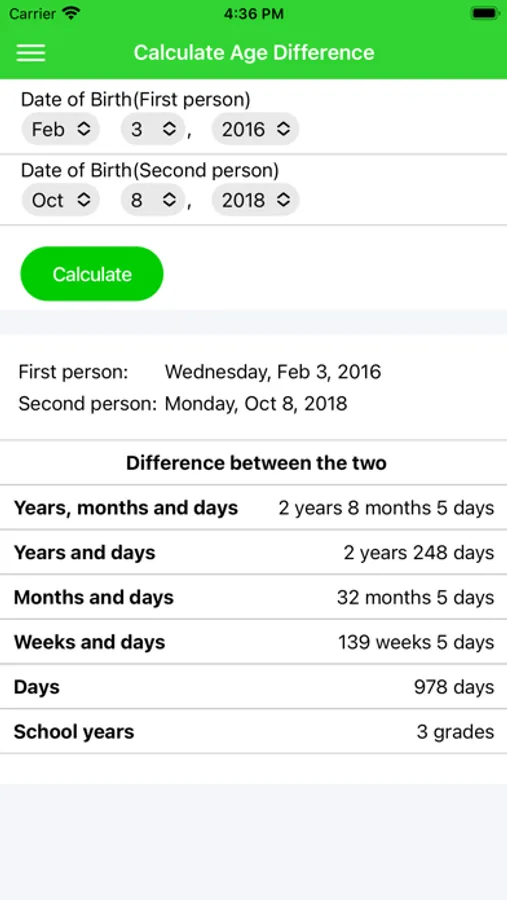 ・ Calculate the age difference between two people