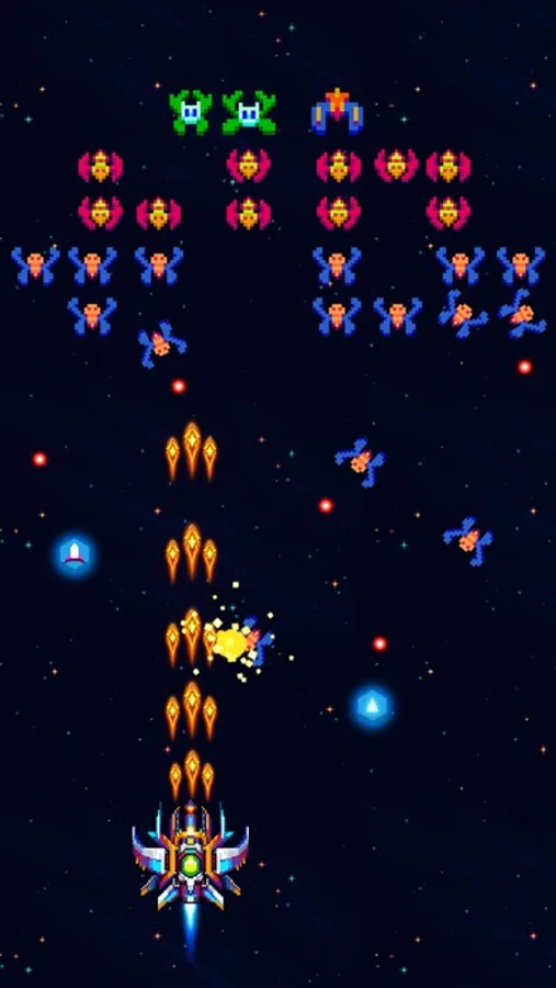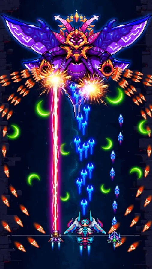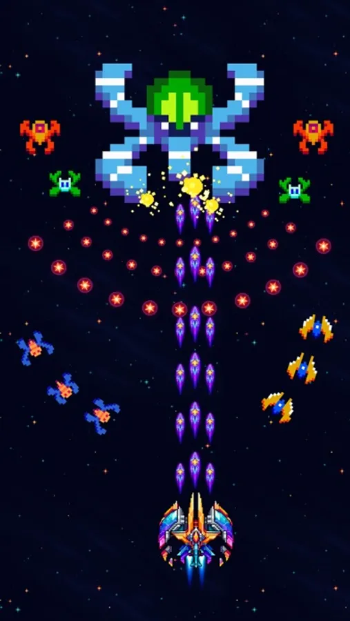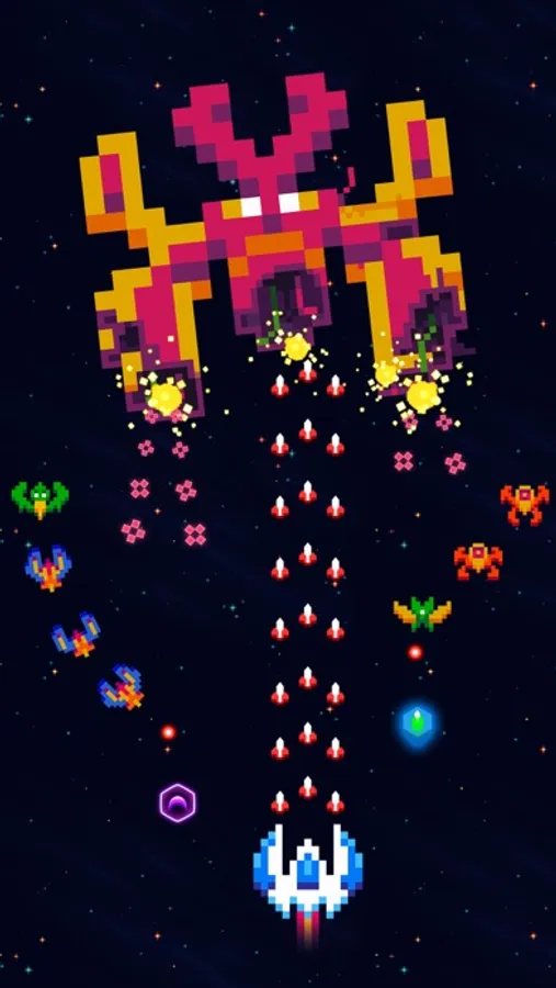 - Use coins and gems to upgrade or evolve your spaceship, and space crafts to fight giant enemies and alien invaders.