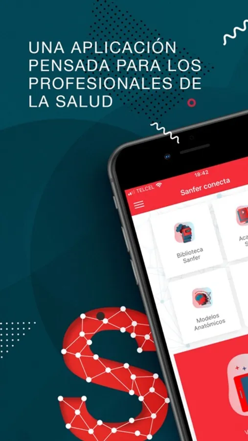 Sanfer conecta es una aplicación pensada en los profesionales de la salud, ofrece herramientas prácticas para el médico, Biblioteca virtual con más de 300,000 libros y artículos médicos, Webinars especializados en temas relacionados con la salud, Librería de modelos anatómicos en 3D y un medio de contacto directo con nosotros