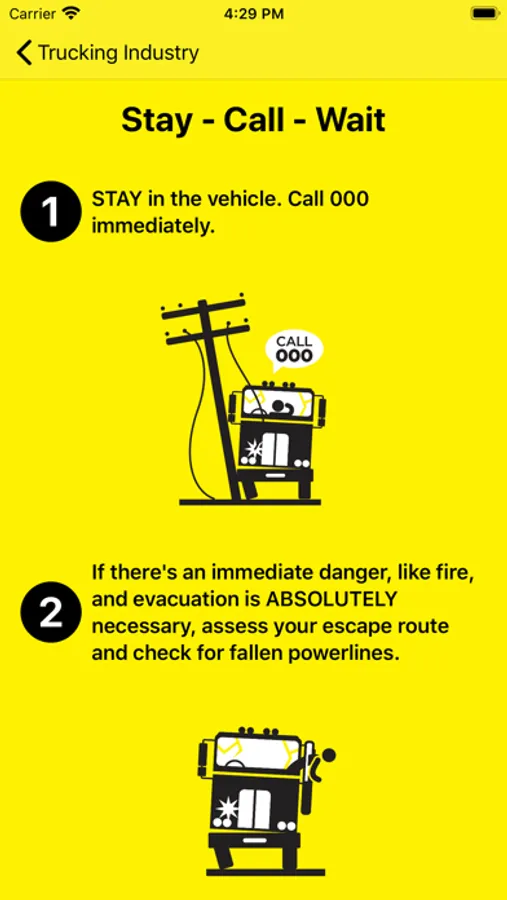 - Emergency procedures for machinery operators in the event of accidental contact with powerlines.