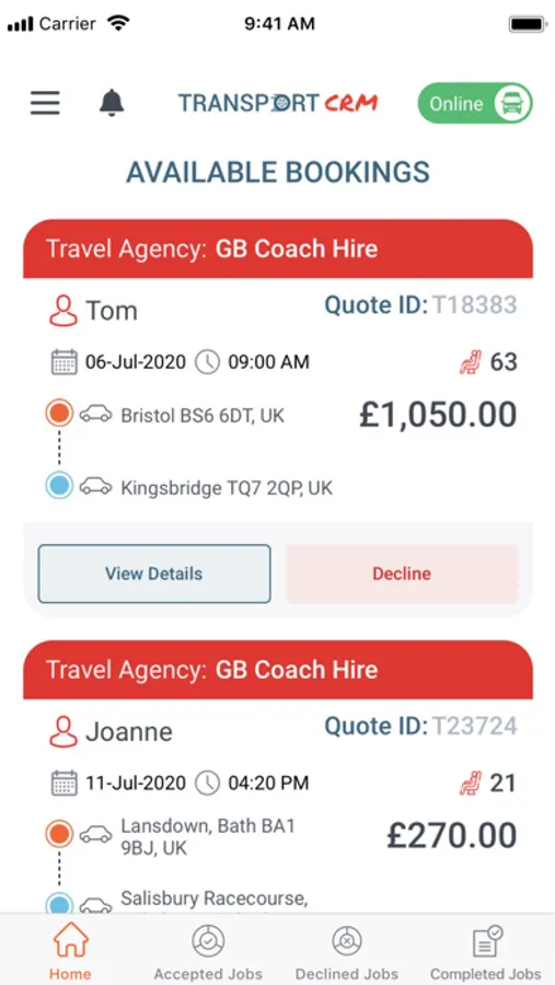 - Access to high numbers of transport booking jobs.