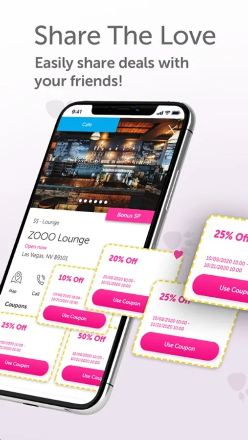 Our app also allows you to easily share offers and discounts with others. Find your favorite venue and follow the prompts to pass coupons along to someone you care about.