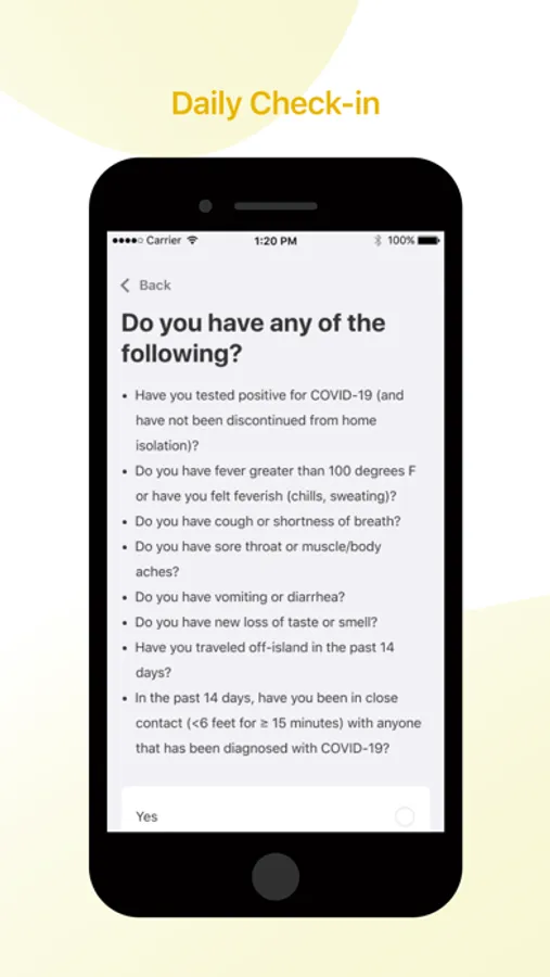 Lumisight UH was developed as a free mobile app and web-based, self-screening tool. Lumisight UH app enables the users to answer and keep track of all their daily screening check-ins to their profile and share their profile with others if they desire to do so.