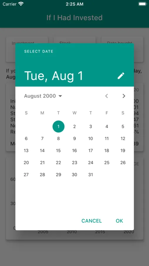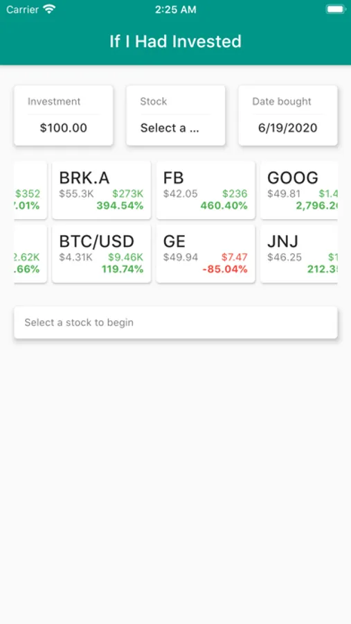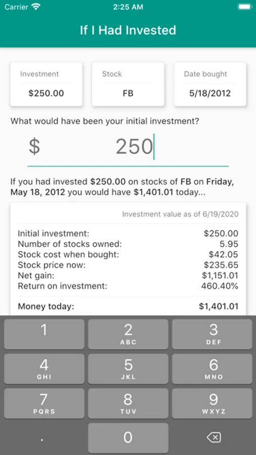 The app calculates in real-time as soon as you change the stock, the initial investment, or the date that you made the buying transaction.