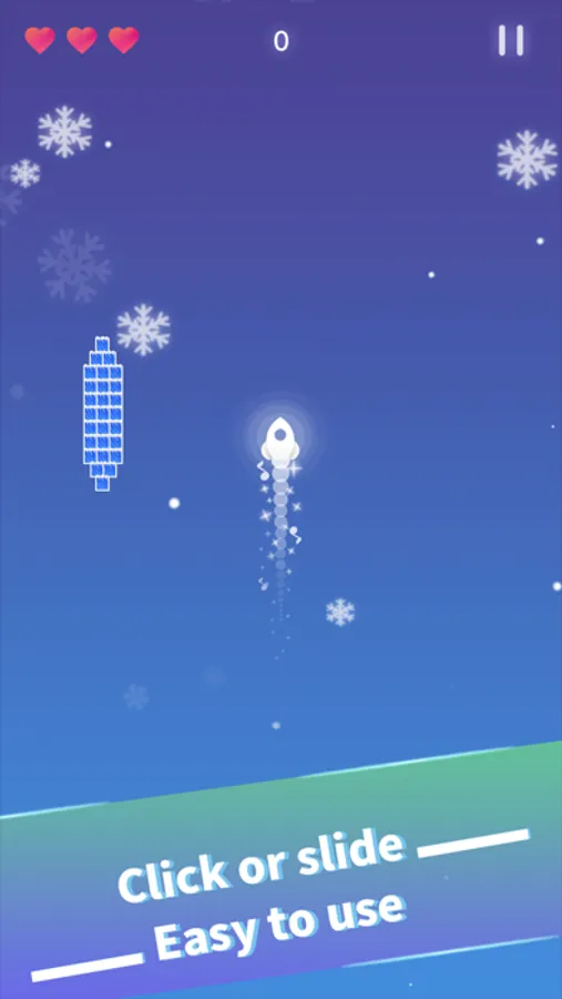 As the game progresses, some ice cubes have been strengthened, you need to slide to change the rocket's orbit, find the weak position of the ice cube to hit.