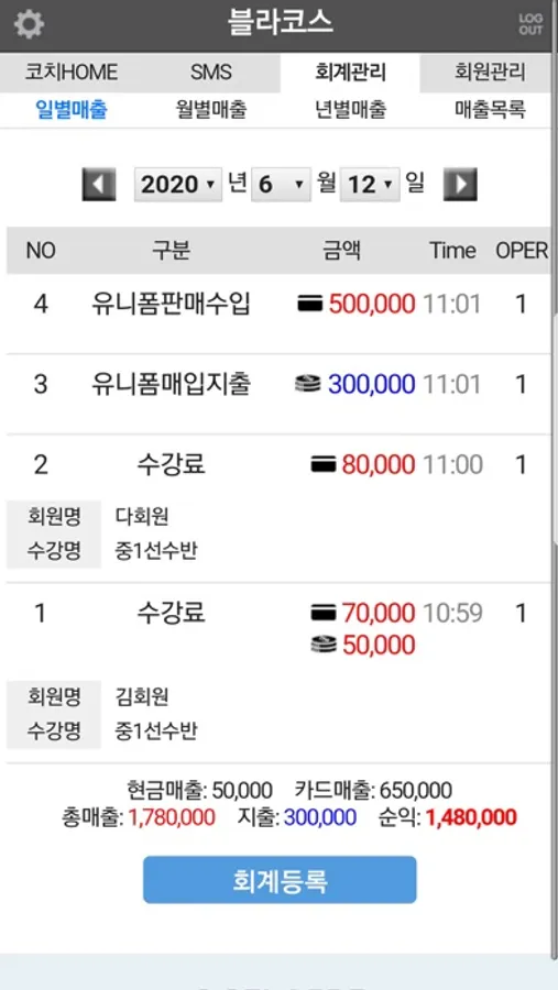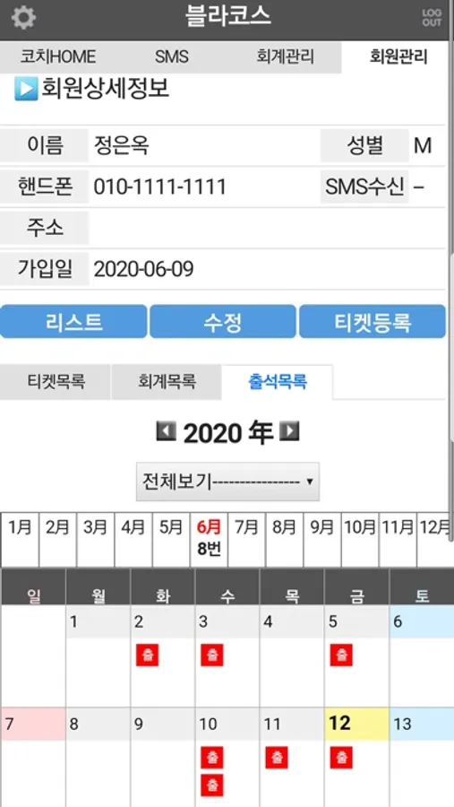 - 수업전 출석을 통회 회원 만료일을 바로 체크 할수 있습니다.