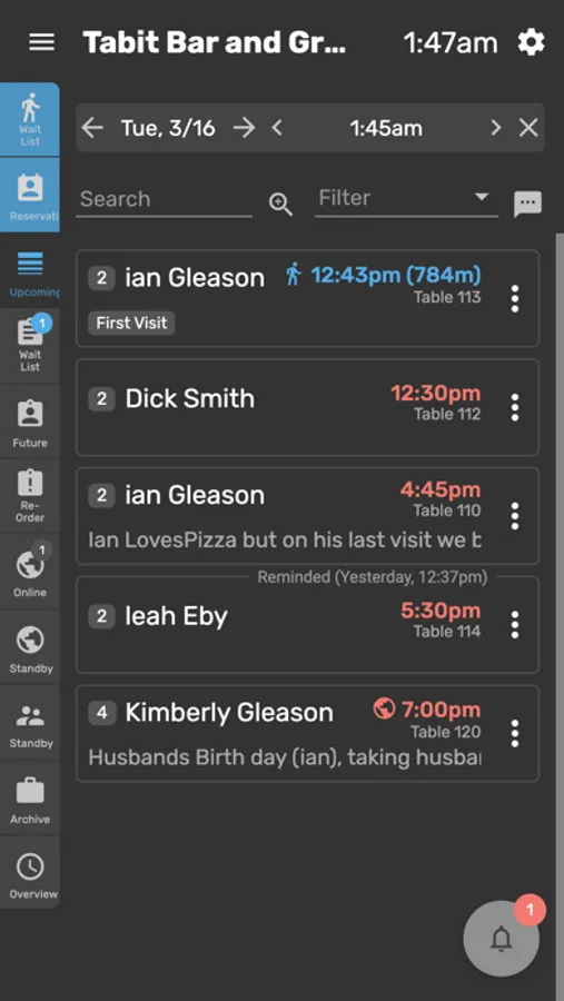 TabitGuest is a reservation and waitlist management system that uses an innovative optimization engine to maximize the occupancy of your restaurant. Customer information and preferences are shared in real-time with relevant restaurant staff to elevate the overall customer experience.