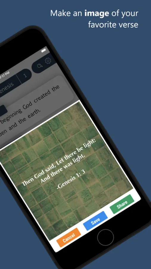 ● Share verses via multiple platforms with ease, like Facebook, Twitter, SMS, WhatsApp, Skype, etc..