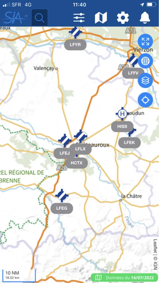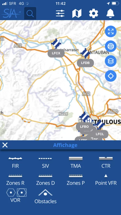 Personalize your consultation by displaying the airspaces of your choice - TMA - CTR - SIV - FIR, P - D - R zones, or even the various VORs and VFR points. Manage your preferences: aerodromes or heliports - French or English - Automatic map updates.
