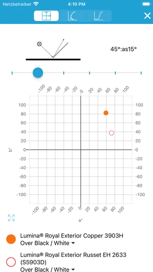 Enjoy assessing the comparative appearance of two pigments under the varying illumination and observation conditions that you simulate by tilting your device with your arm – like you do in the real world!