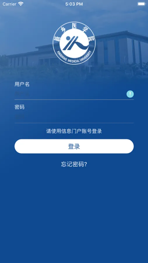 欢迎使用新乡医学院智慧校园App,您可以使用学校分配给您的学/工号登录,查看校园动态,快捷办理事务。