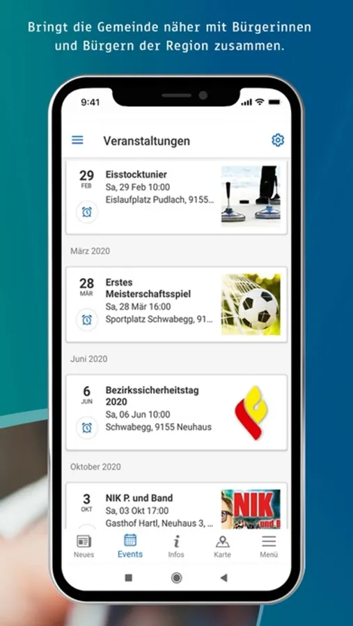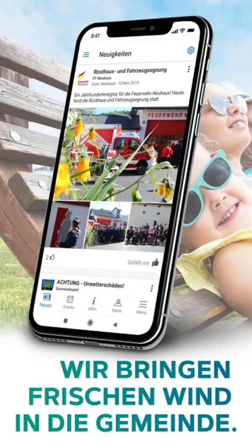 Unsere GemeindeApp bringt die Gemeinde näher mit den Bürgerinnen und Bürgern der Region zusammen. Gemeindebürgerinnen und Gemeindebürger werden stärker in regionale Ereignisse eingebunden und in Notsituationen sekundenschnell informiert.